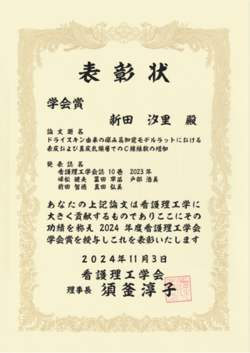 新田汐里. 2024年度看護理工学会 学会賞. Nov. 2024.