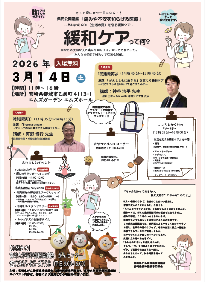 令和7年度 宮崎県がん診療連携協議会 緩和医療専門部会 県民公開講座を下記の日時で開催いたします。