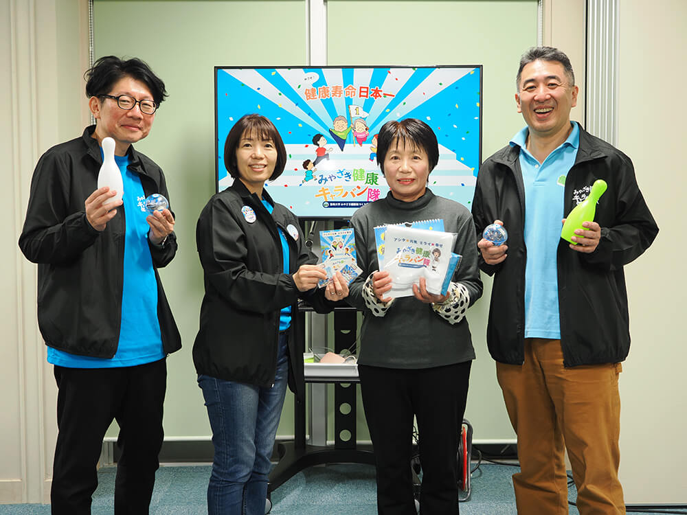 そこで、みなさんの健康寿命を延ばすために、プロフェッショナルである宮崎大学の教授達が「みやざき健康キャラバン隊」を結成しました。 専門知識と技術にもとづいて、みなさんと共に将来の病気を予防します。