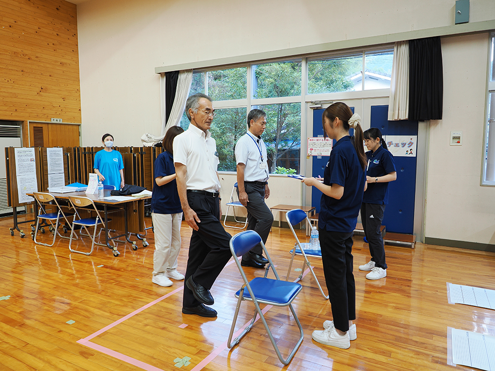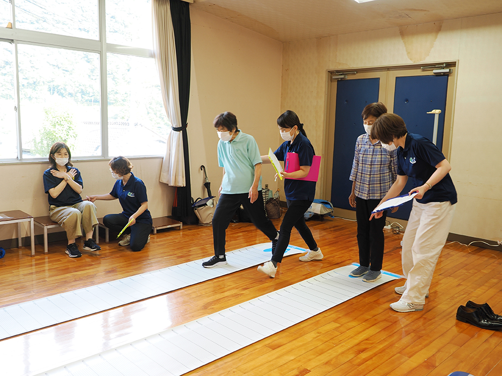 ロコモ度チェックでは「2ステップテスト」「立ち上がりテスト」「片脚立ちテスト(開眼・閉眼)」を実施。簡単そうに見えますが若い方でも以外とふらついてしまいます。自分の体幹をチェックする良い機会になったようです。