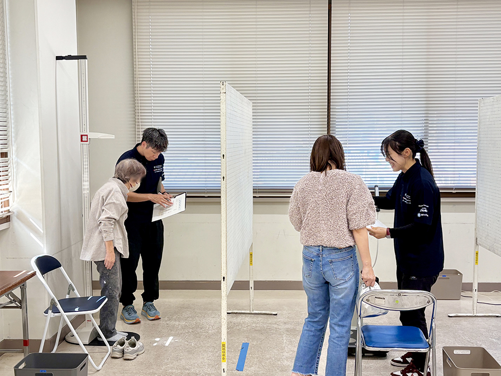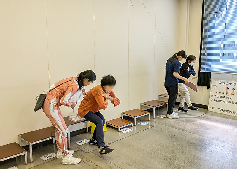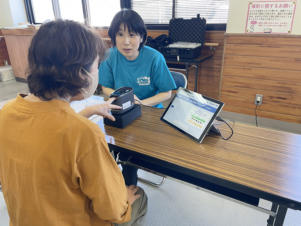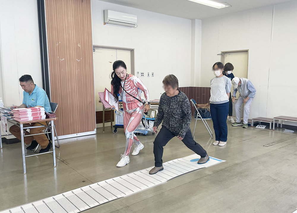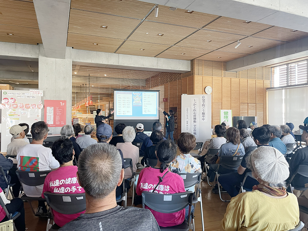 キャラバン隊は「心電図モニターチェック」「ロコモ度チェック」「ベジチェック」「体組成」の健康チェックとキャラバン隊・隊長の渡邉望先生による健康講話を実施しました。