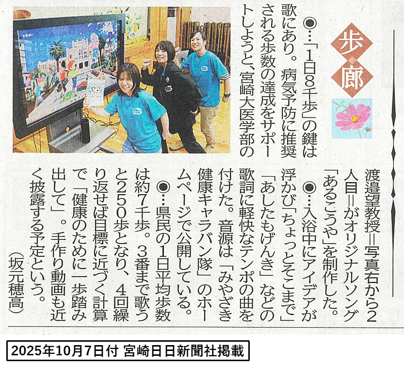 2025年10月7日発刊の宮崎日日新聞に現在キャラバン隊が現在新たに力を入れて取り組んでいる「あるこうや」についての記事が掲載されました。