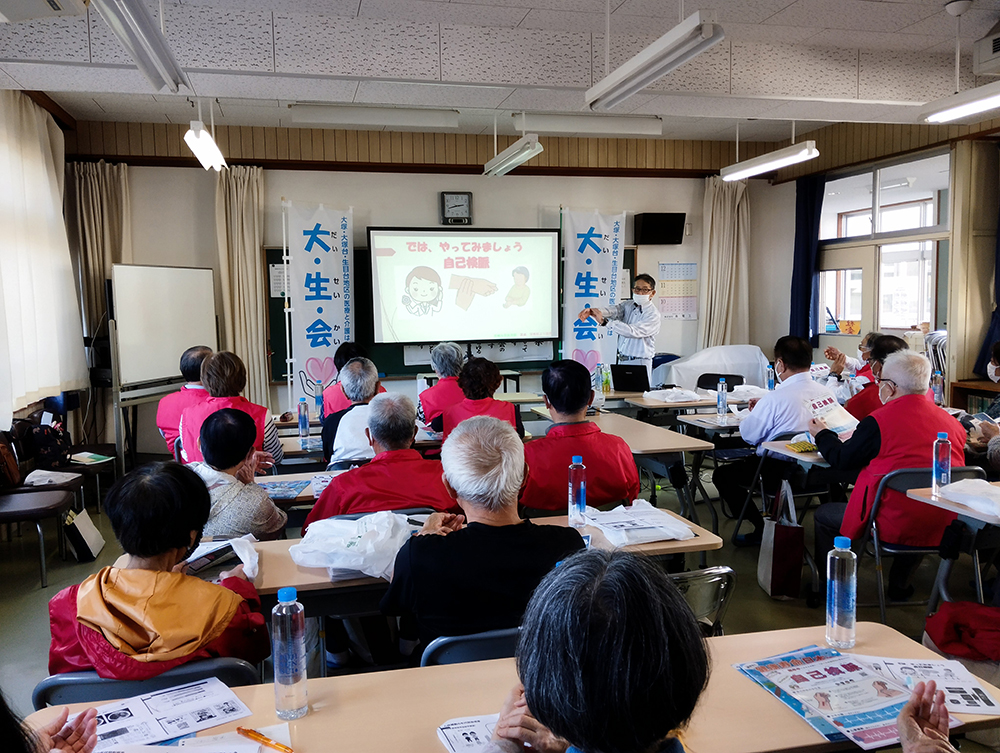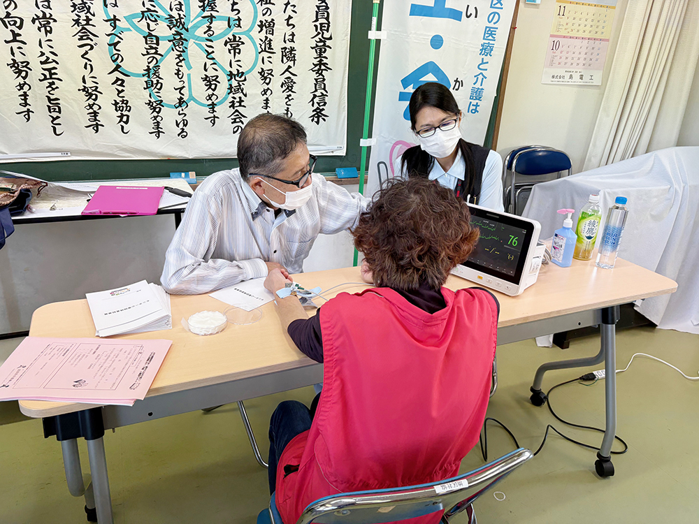 2025年11月6日(木)に大塚台健康出前講座が開かれ、キャラバン隊メンバーである名越内科の名越敏郎先生が講演と心電図モニターチェックを実施しました。32名の方に参加いただき、自己検脈指導や心電図モニターを受けて行かれました。心房細動は脳卒中につながる怖い不整脈。自覚症状が無い為、ある日突然脳卒中に…ということが珍しくありません。ですが、心房細動による脳卒中は防ぐことができます。日頃からの脈拍チェックで異常が見つかったら早めに医師に相談しましょう!
