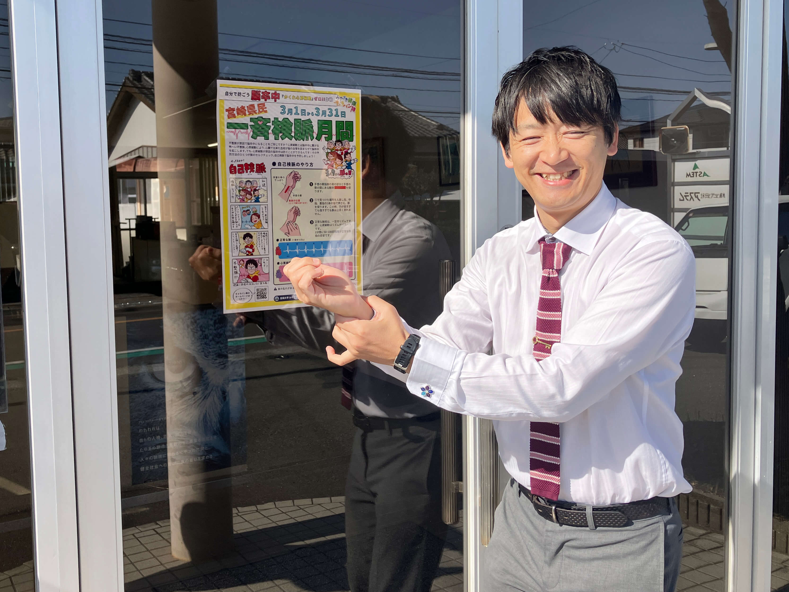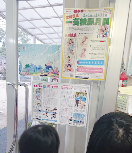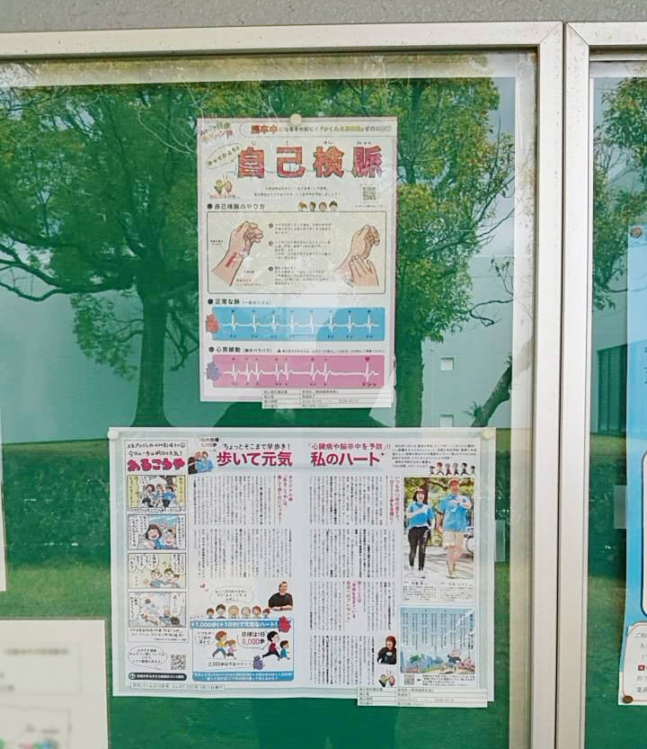 みやざき健康キャラバン隊は3月を「宮崎県民一斉検脈月間」として、宮崎県内の各団体や企業にポスター・チラシを掲示いただき宮崎県全体を巻き込んで「自己検脈」の啓発活動を行っています。