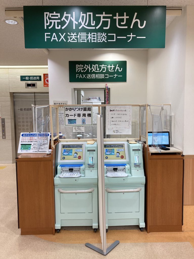 「院外処方せん」をお持ちの場合は、「院外処方箋FAX送信相談コーナー」にご提出いただければ、ご希望の調剤薬局に事前にFAXいたします。