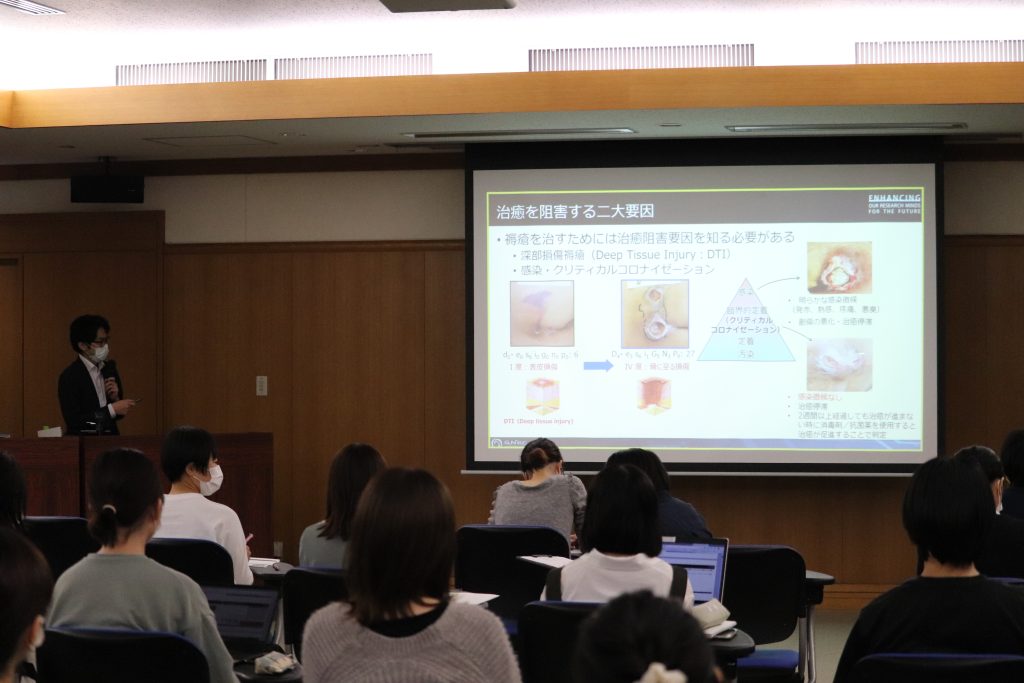 宮崎大学大学院看護学研究科・ 生体システム看護学特論の講義の一貫として特別講演を開催しました。東京大学大学院医学系研究科の仲上豪二郎教授をお招きし、「ケアイノベーション研究」と「データサイエンス研究」についてご講義いただきました。大学院生だけでなく、看護学科の学部生や教員、附属病院の看護師など多くのご参加をいただき、2会場開催(本会場と中継会場)で盛大に行うことができました。