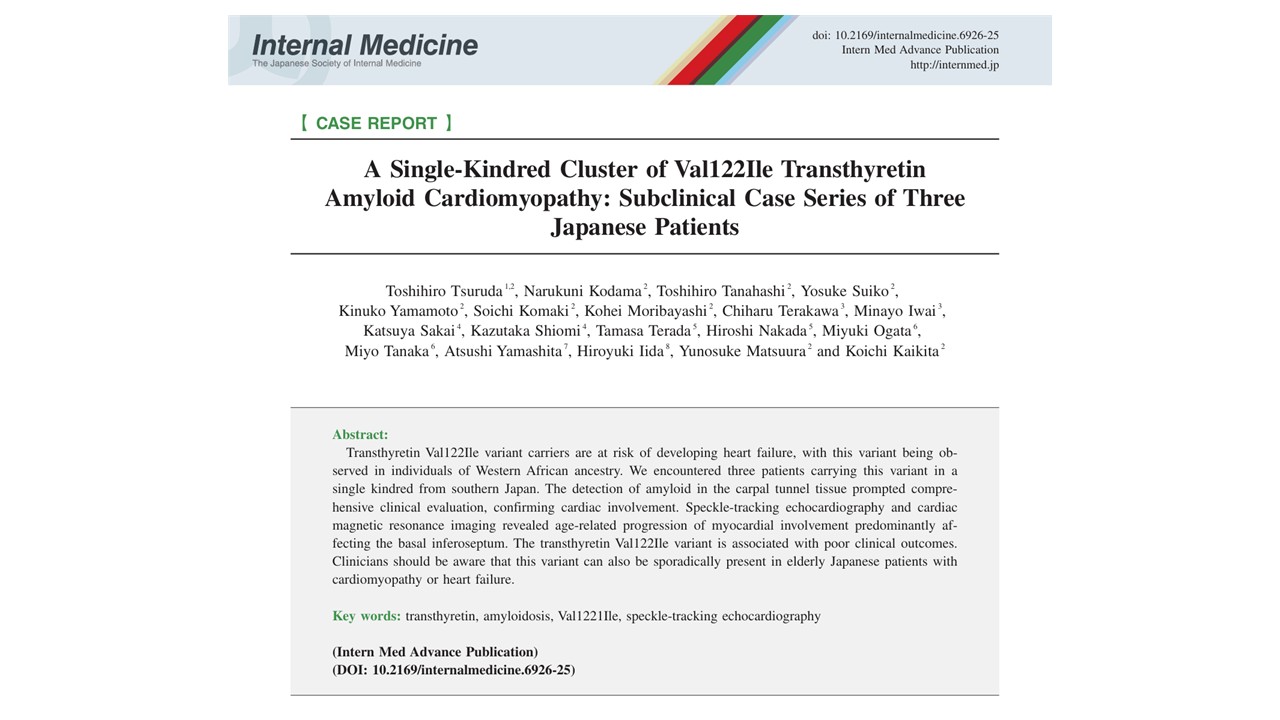 鶴田敏博先生の症例報告が、Internal Medicine誌にアクセプトされました。