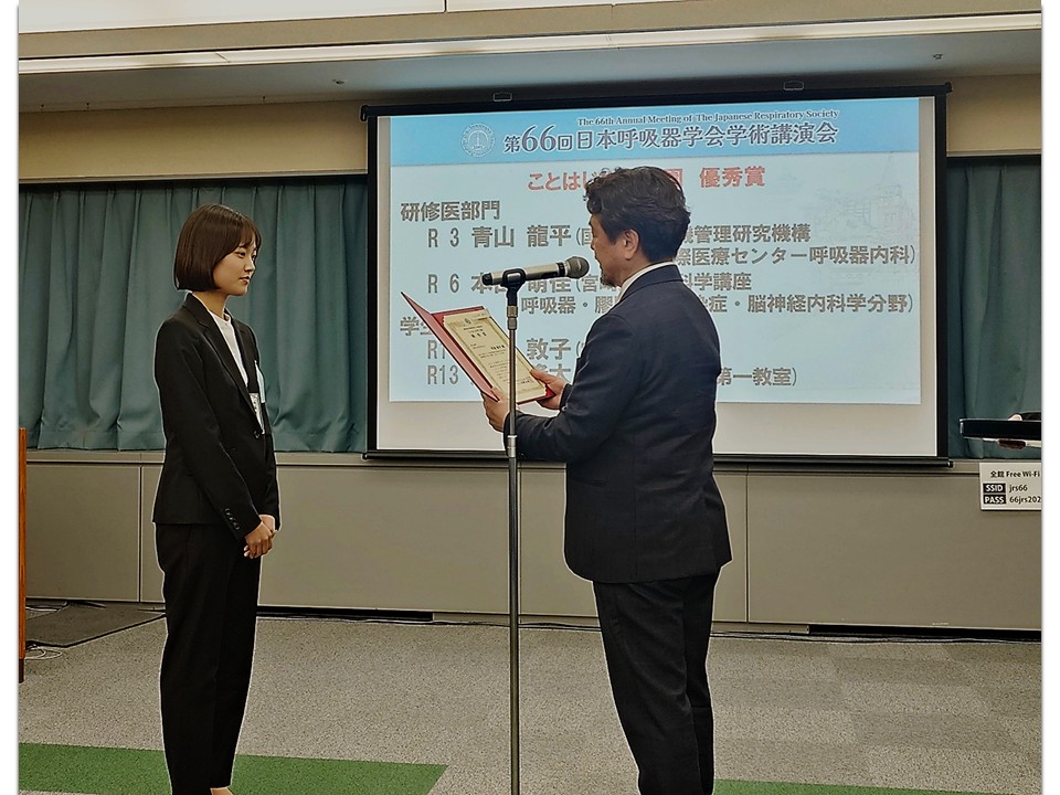 【受賞】本田萌佳先生、医学生河波さんが日本呼吸器学会 呼吸器病学ことはじめ甲子園 優秀賞を受賞しました。