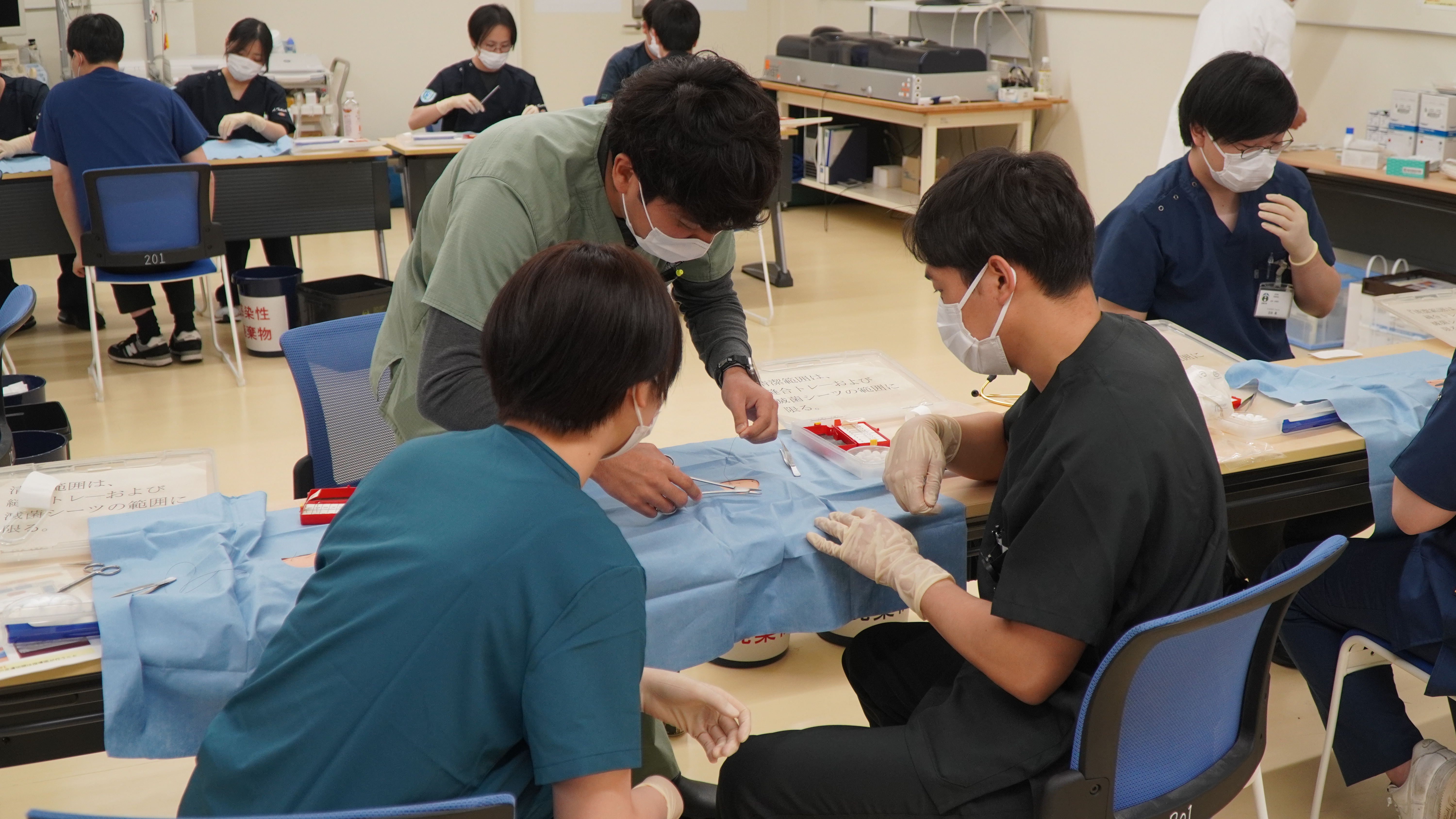 午後は、本学医学部の臨床技術トレーニングセンターにて、「宮崎県研修医合同基本手技実習」に参加しました。