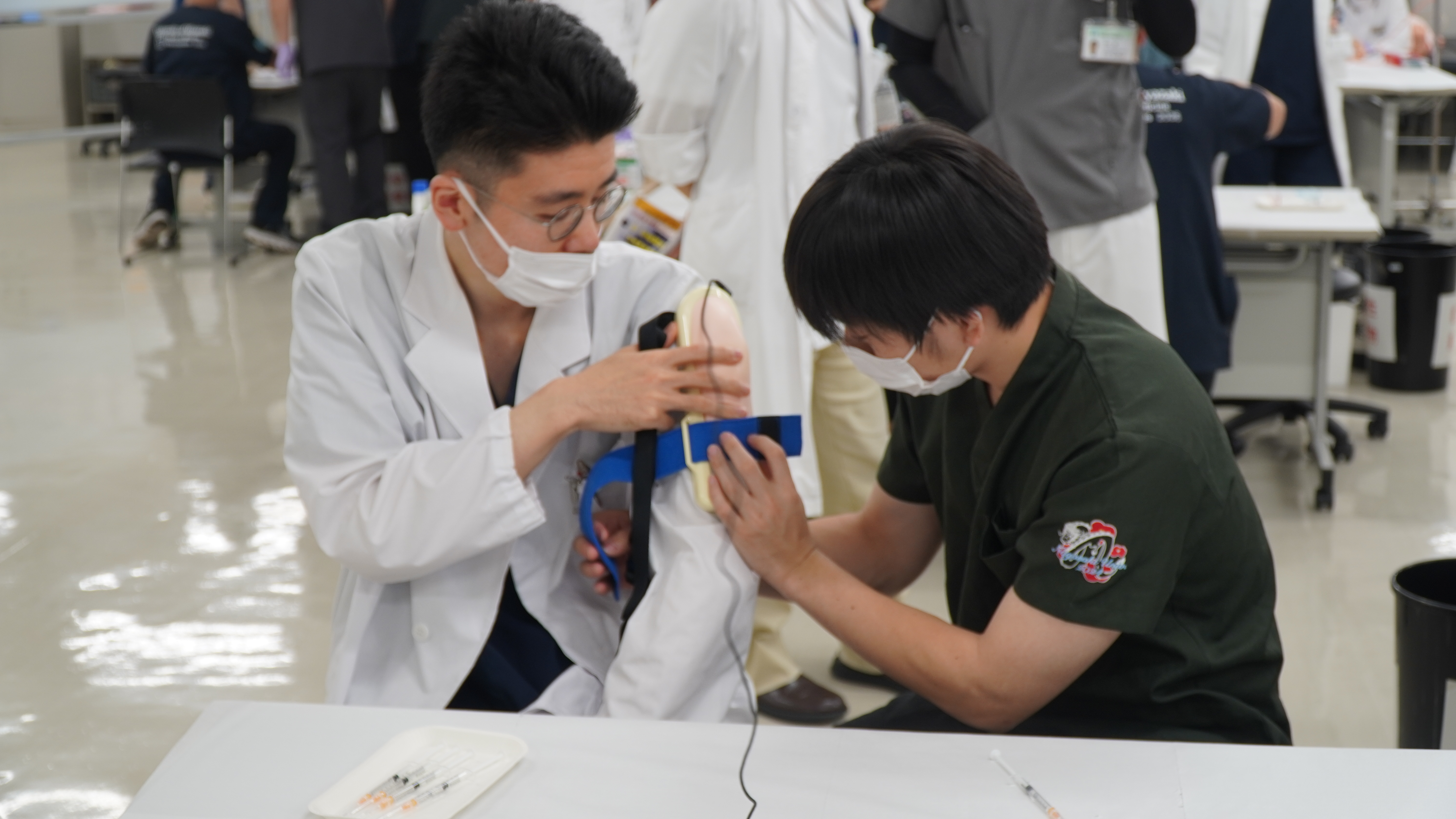 各ブースの持ち時間は30分と短いながらも、それぞれのスキルに集中して取り組む姿が印象的でした。新たに技術を学ぶというよりは、学生時代の実習で身につけた知識・技術を再確認し、記憶を呼び起こす時間になったようです。参加した研修医たちは、緊張感の中にも真剣な表情でスキルの習得に臨んでいました。