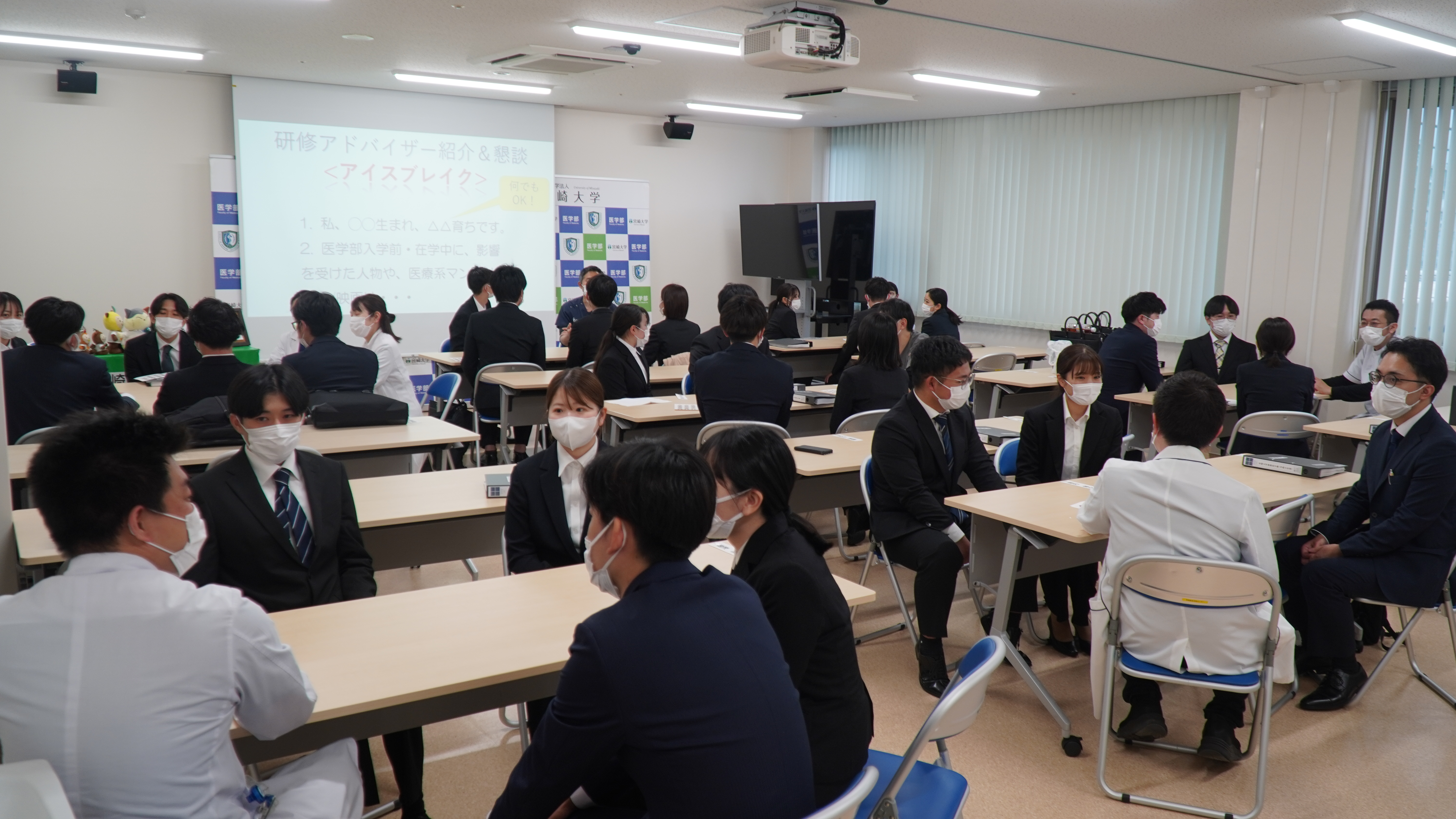 初日は、基本的に座学中心の1日となりました。研修医の皆さんは、いわゆる“リクルートスーツ”に身を包み、やや緊張した面持ちでしたが、今後この表情がどのように変化していくのか楽しみです。