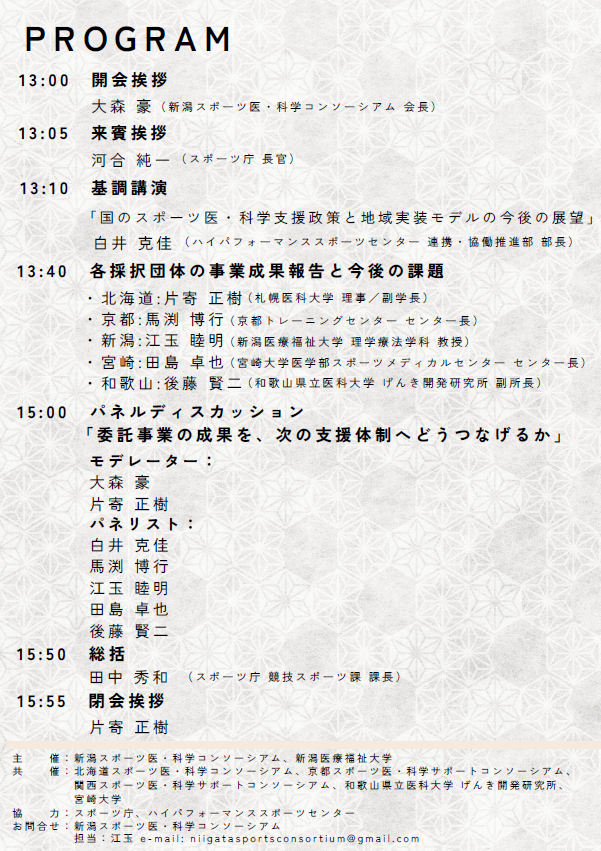【主 催】 新潟スポーツ医・科学コンソーシアム