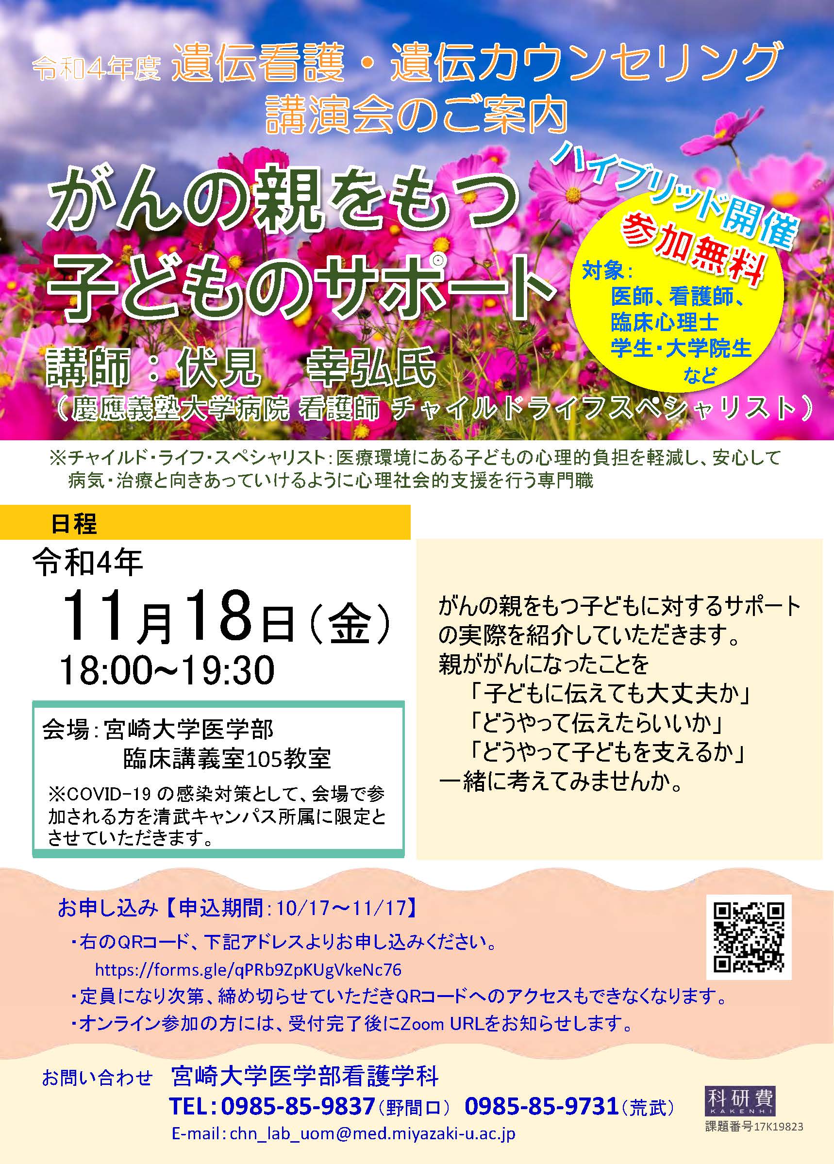 学内外の看護師、看護教員、遺伝カウンセラー、看護学生が参加して、がんの親をもつ子どものサポートについて、具体的な方法を学びました。