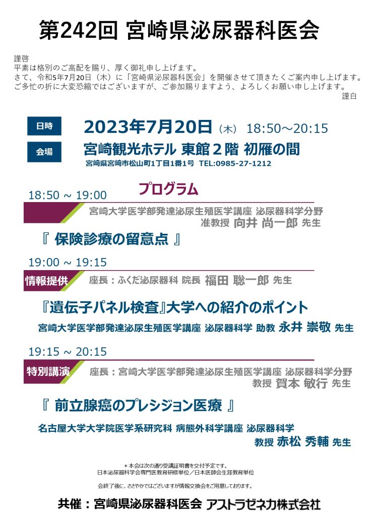 令和5年7月の第242回宮崎県泌尿器科医会のご案内