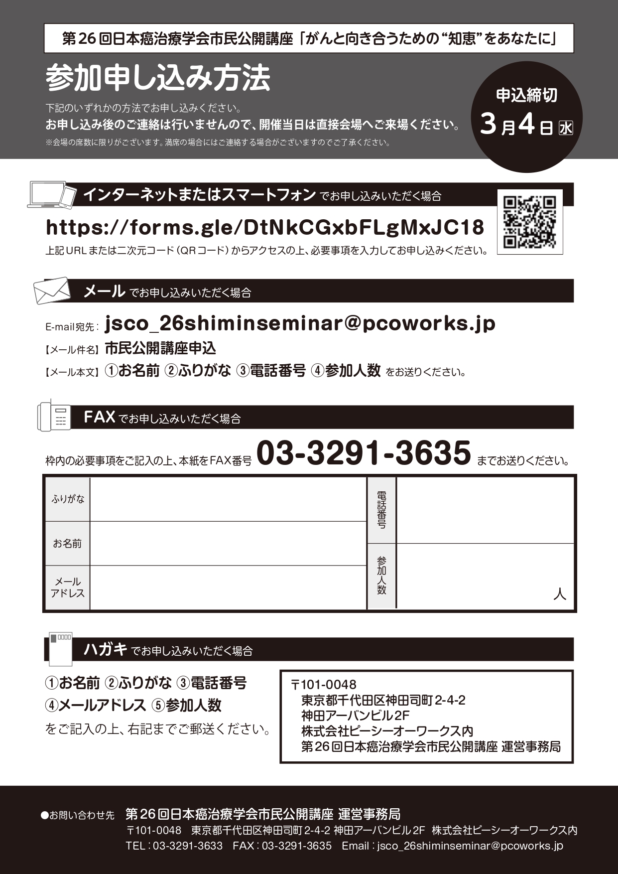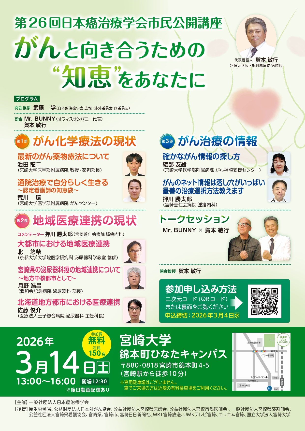 2026年3月14日(土)開催:第26回日本癌治療学会市民公開講座~がんと向き合うための”知恵”をあなたに~を開催致します