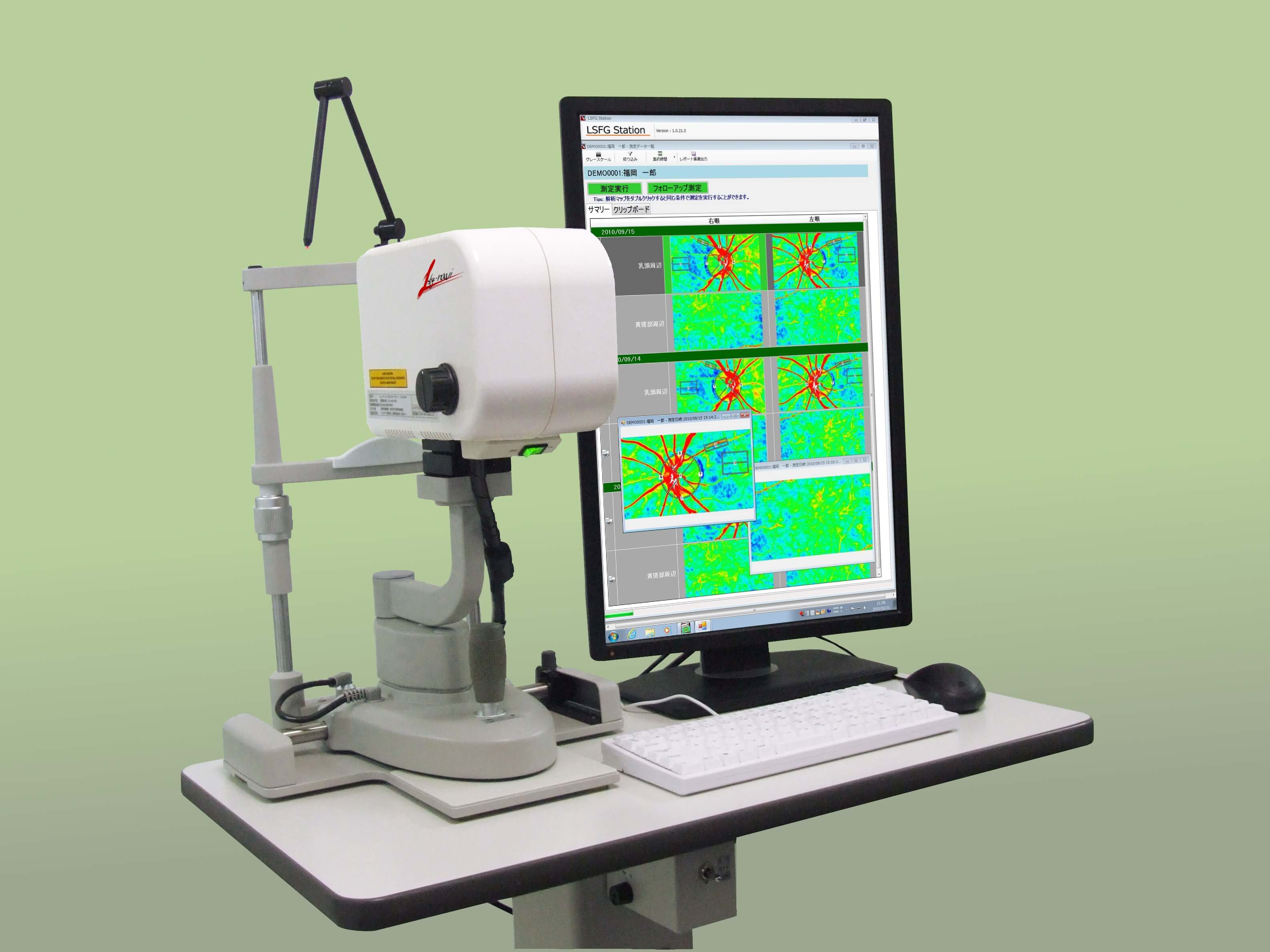 レーザースペックルフローグラフィーとは、眼内の血流をリアルタイムで観察・測定可能な検査機器です。様々な疾患で網膜の血流量と病態との関連が知られています。