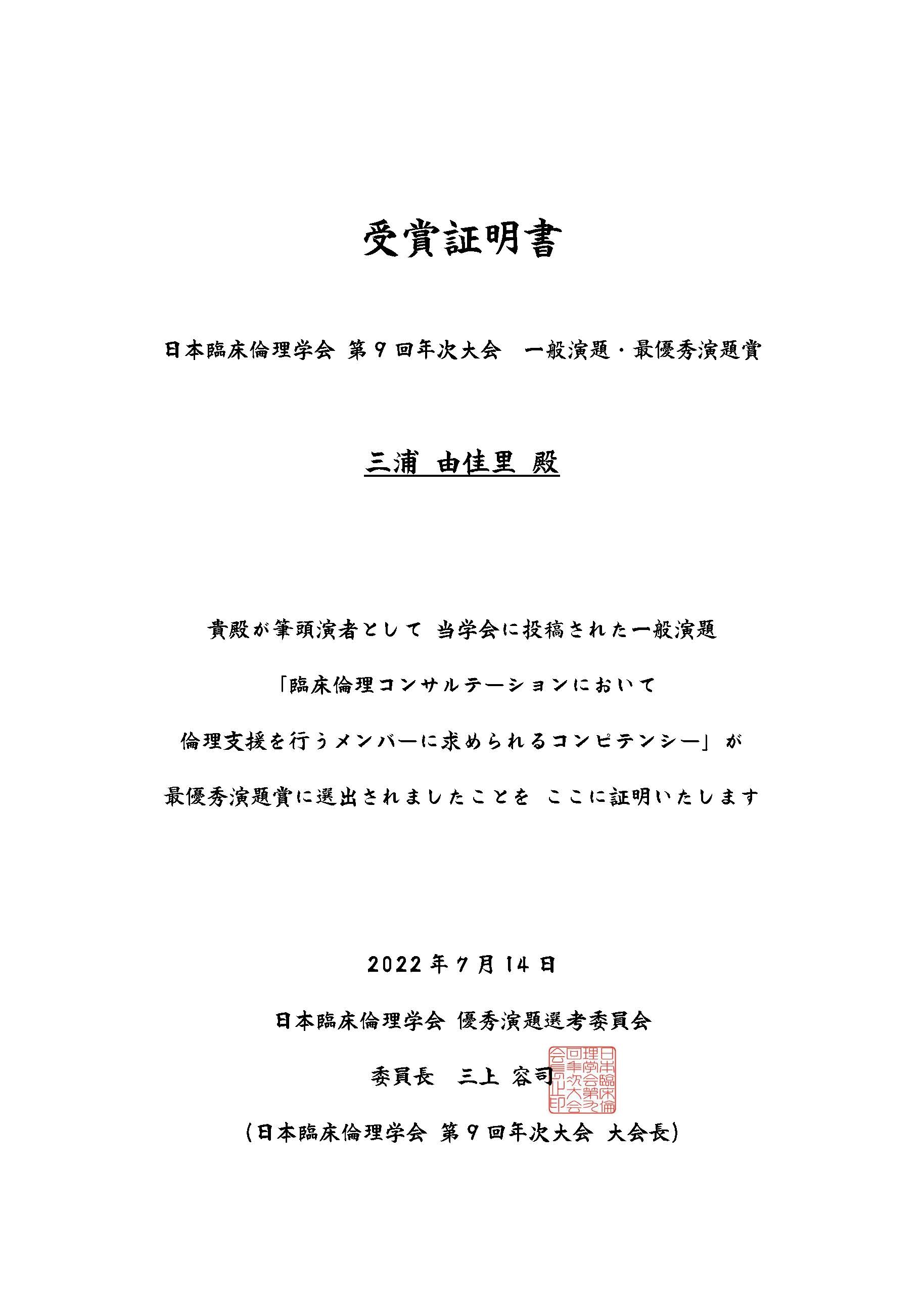生命・医療倫理学分野(中央診療部門 臨床倫理部)まで。